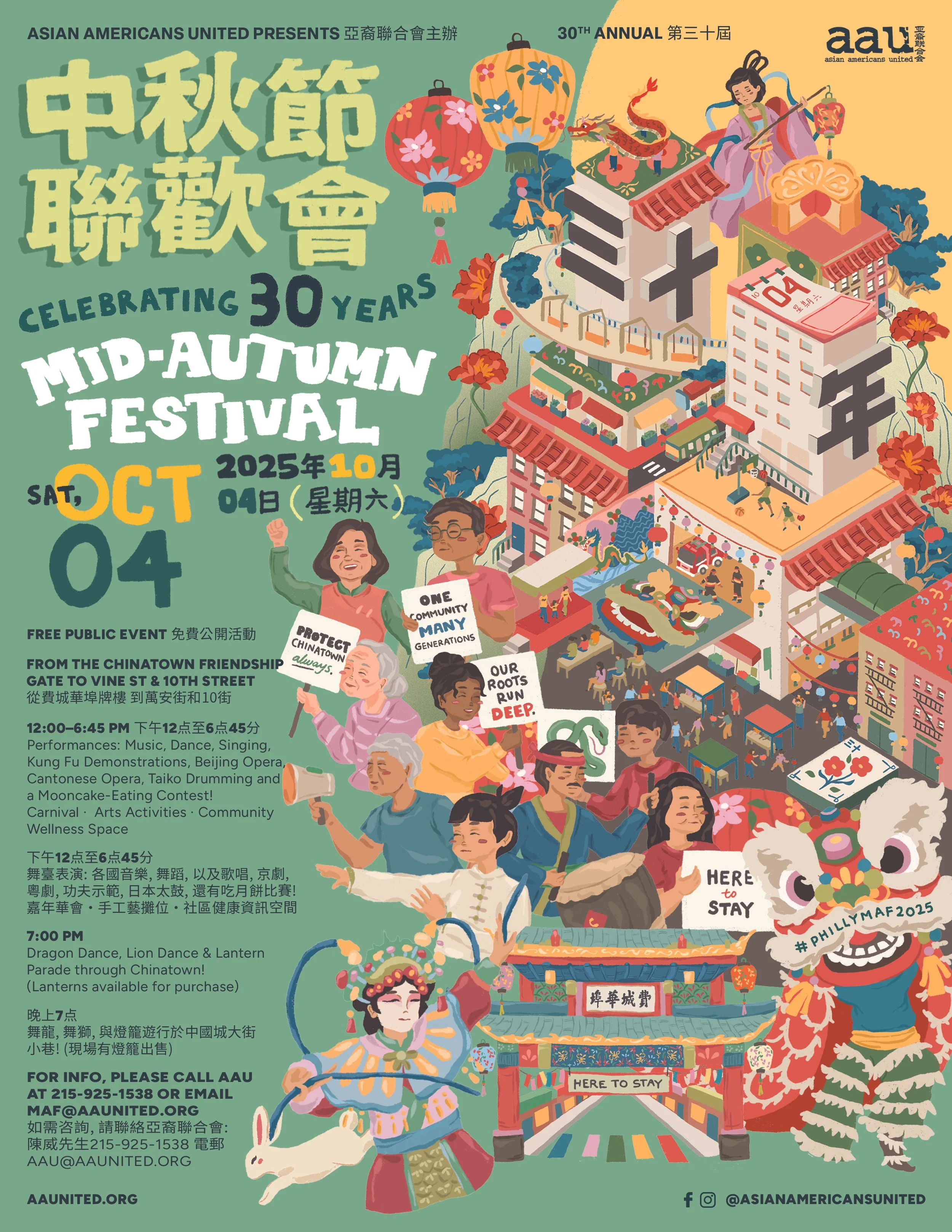 In 2023, Philly’s Chinatown was declared one of the most endangered historic places in our nation. You can help combat this by becoming a Mid-Autumn Festival sponsor. With the help of our sponsors, AAU can more readily help strengthen Chinatown’s community, culture and pride with a lively and exciting Mid-Autumn Festival.